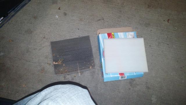 Changed the oil and cabin filter. Looks like the old one was probably the original. That's about 100k miles of gross that I was breathing in... Now she's all ready to make the 2400 mile trek to Michigan!