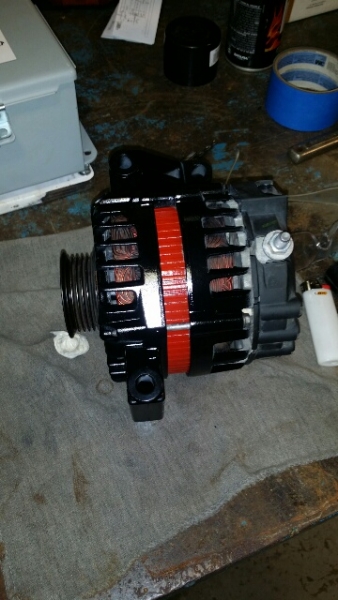 Disassembled the alternator, a/c compressor, and starter. Blasted and painted. Cleaned it up real nice, because I couldn't bolt it on to my new engine looking like 139k miles!