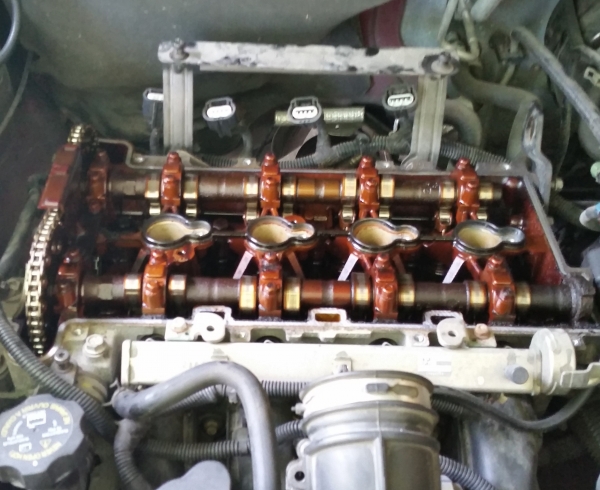 Replaced the timing chain tensioner today. As you can see it was cracked and on its last leg. I did it the right way and popped the valve covers off. I found it helpful to remove the cowl so you can get a breaker bar in there. Alittle tight on the clearance. Runs super smooth now, no sowing machine on cold start up.