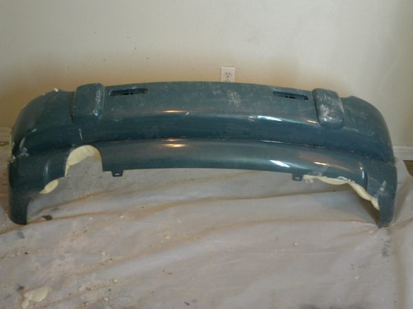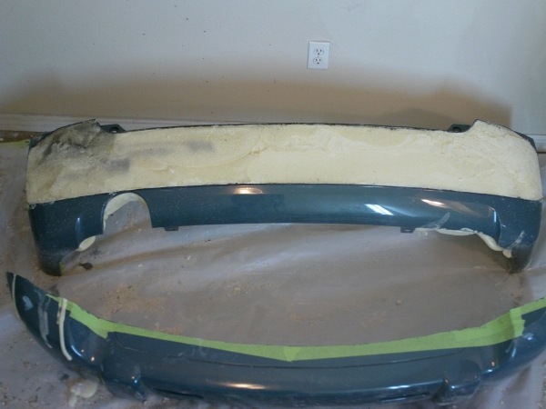 i started chopping up the rear donor bumper. first i back filled the bumper with liquid polyurethane expanding foam. next i marked out where to cut it, then broke out the dremel.