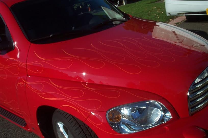 stripes, 2 black 1 red with red chevy bow tie on back quarter panel