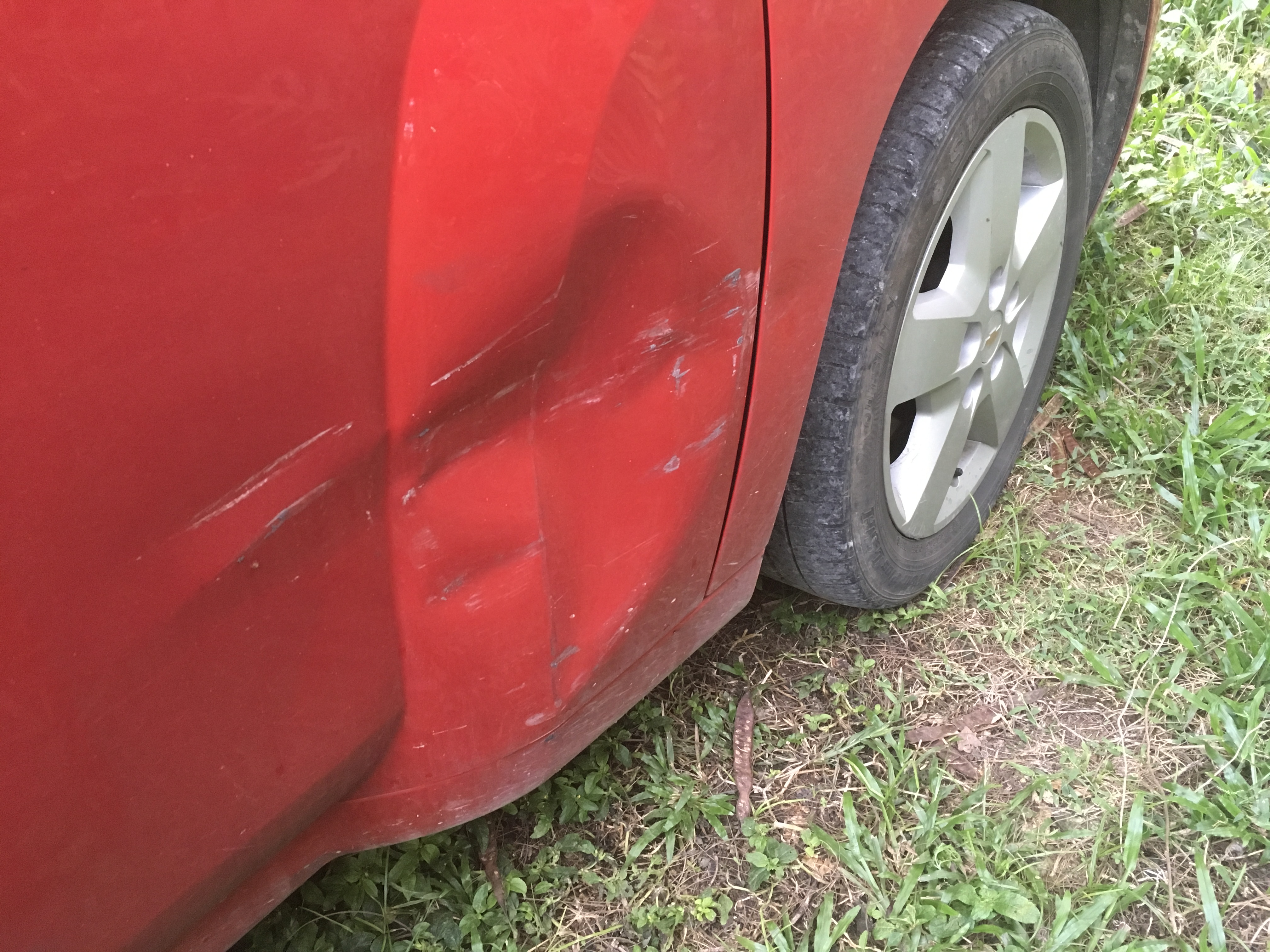 Went out to drive Sweetie to a doctors appointment, thought the left rear looked low, and saw a nail sticking in the thread and out through the side wall!