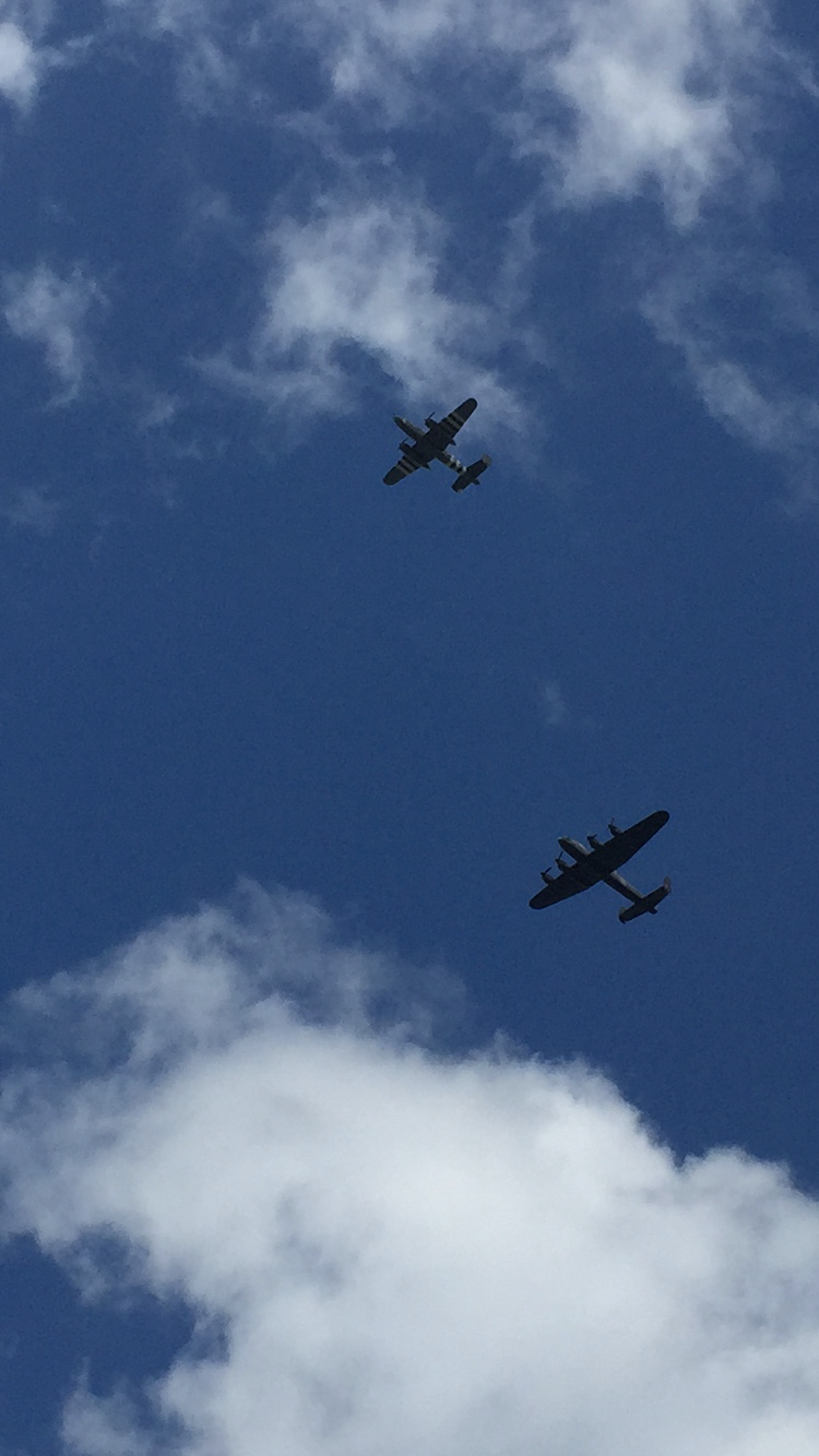 When out for a coffee , had these guys fly over, a Lancaster and B-24