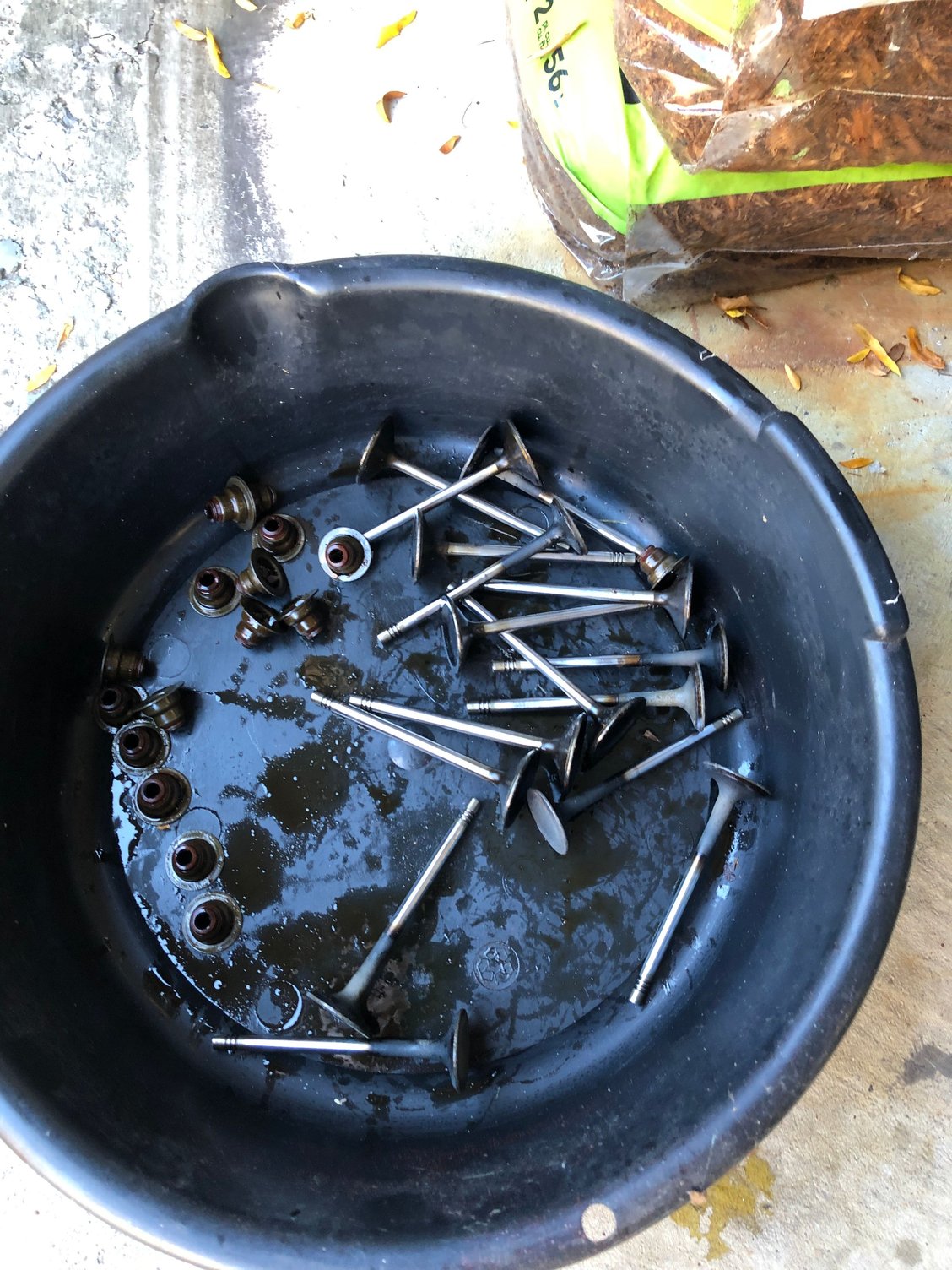 Used tywraps to hold the links in place! Intake dide Exhaust side! Ensured the timing chain was in the correct place , then installed the tensioner and gave it a smack to engage it, That took up all chain slack! Intake balance gear in place Exhaust balance shaft gear also aligned Balance shaft crankshaft gear aligned with the coloursed link. 8 intake and 8 exhaust valves, scrapped out, and the valve guide seals Used this handy tool to compress the valve springs then remove the valve keepers Then installed new seals and valves and used the tool again to reinstall the keepers New valves, no gaps Another cylinder And another Good thing there’s only four, eh?