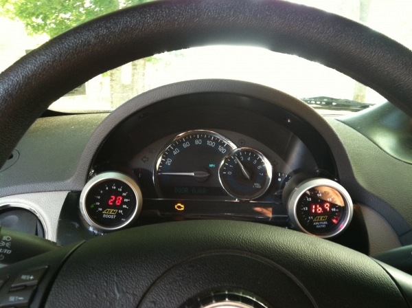 gettin check engine lights from misfires and lean fuel at idle. i plan on going to the track this week to dial in the Trifecta Tune. other than that, i found out i'm pullin at a steady 10 PSI, and peak boostin at 12 PSI my air/fuel is a little high, in the 14's, gonna tune that to the 12's