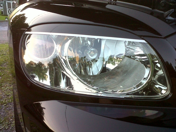 I did a permanent type of eylid. Painted the black on after marking and sanding the plastic. Then added the silver pinstripe.