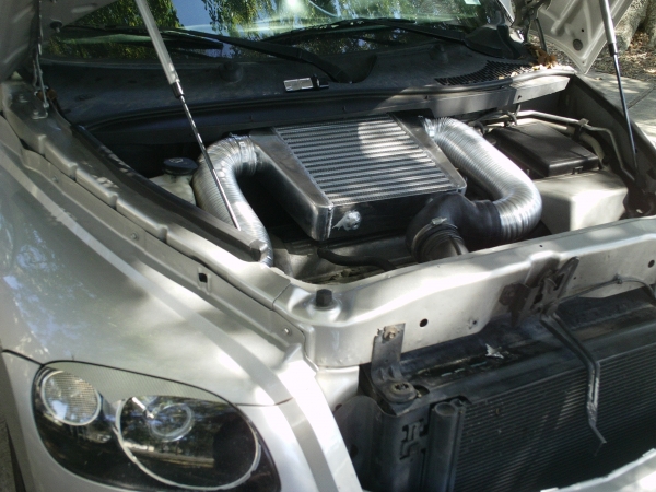 well, i started mocking up a new cold air intake setup. im only in the beginning stages of fabrication, just had to get an idea of how much room i got to work with. still have to make a mounting bracket, carbon fiber a heat shield, install a MAF sensor, and add a functional hood scoop. the filter will be in the fender well, where the stock intake gets it's air from.