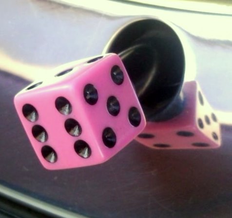 I washed and detailed Sirius Blackie in prep for the Hooters car show. Going to be a scorcher, but my pink pins gotta sparkle ... Even put on the pink dice valve stems!