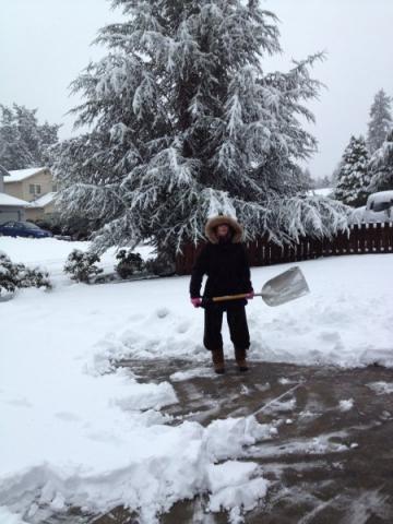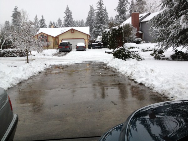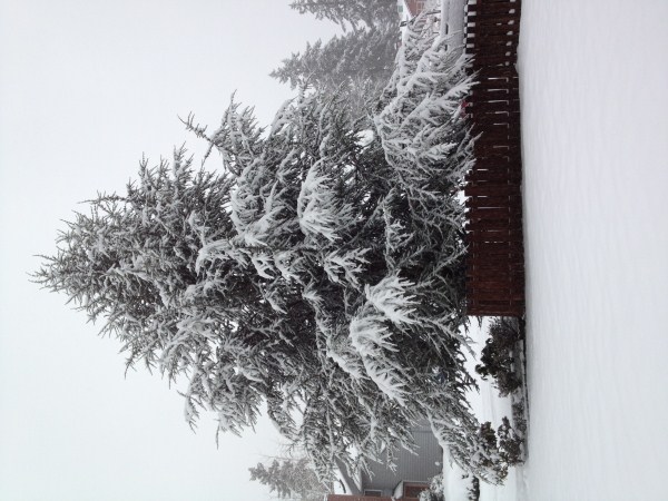 I thought about trying out the new Gmax in ten inches of snow, considering the height of my blade, I mean spoiler I left it in the garage. Hope my tree can hold the weight, seem to be leaning a bit. My eskimo helper. Look who came for breakfast, kind of strange but He lives here year round. I could get out but I think I'll relax and leave it to the amateurs, it's almost funny how bad people are at driving in it here. The News Lady say's we have recorded 800 accidents so far today !!!