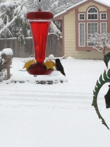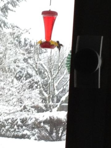 Wow that poor little guy , I thought Humming Birds all flew south for the Winter.