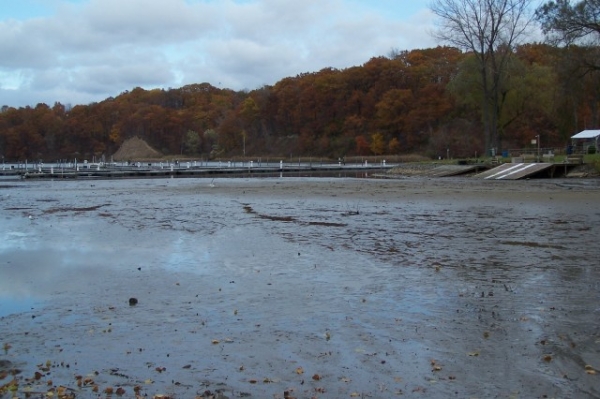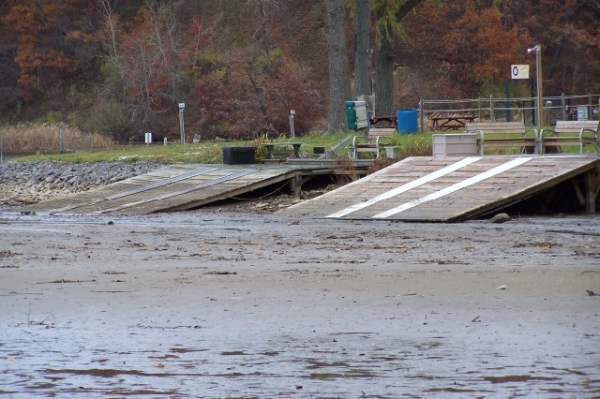 This has never happened before, the Bay this low. The docks/ramps are normally 3/4 under water and 2 sea planes are docked on them. With the lack of rain and goofy weather they haven't been able to use them for the past 2 months.
