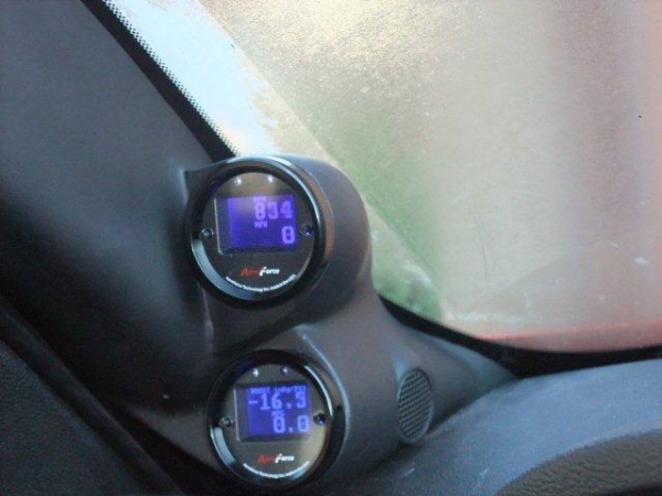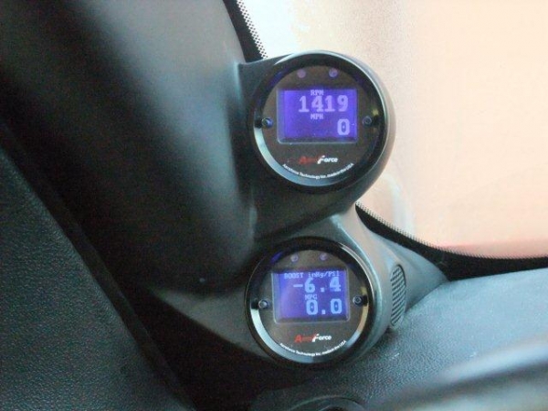 To tell ya the truth, I haven't yet decided. I believe I have the selection of something like 63 different items to monitor and with two gauges I can display 4 at a time and can set two alerts (i.e. over temperature, boast level, shift point, etc....). I'll set-up each monitor to cycle thru a different set of selection options, but just off the top of my head, I'd like to digitally display boast, temperature (water, oil, intake air?), mph (since I can't see the standard gauge), knock retard, HP, rpm - hmmm, I might need a third gauge