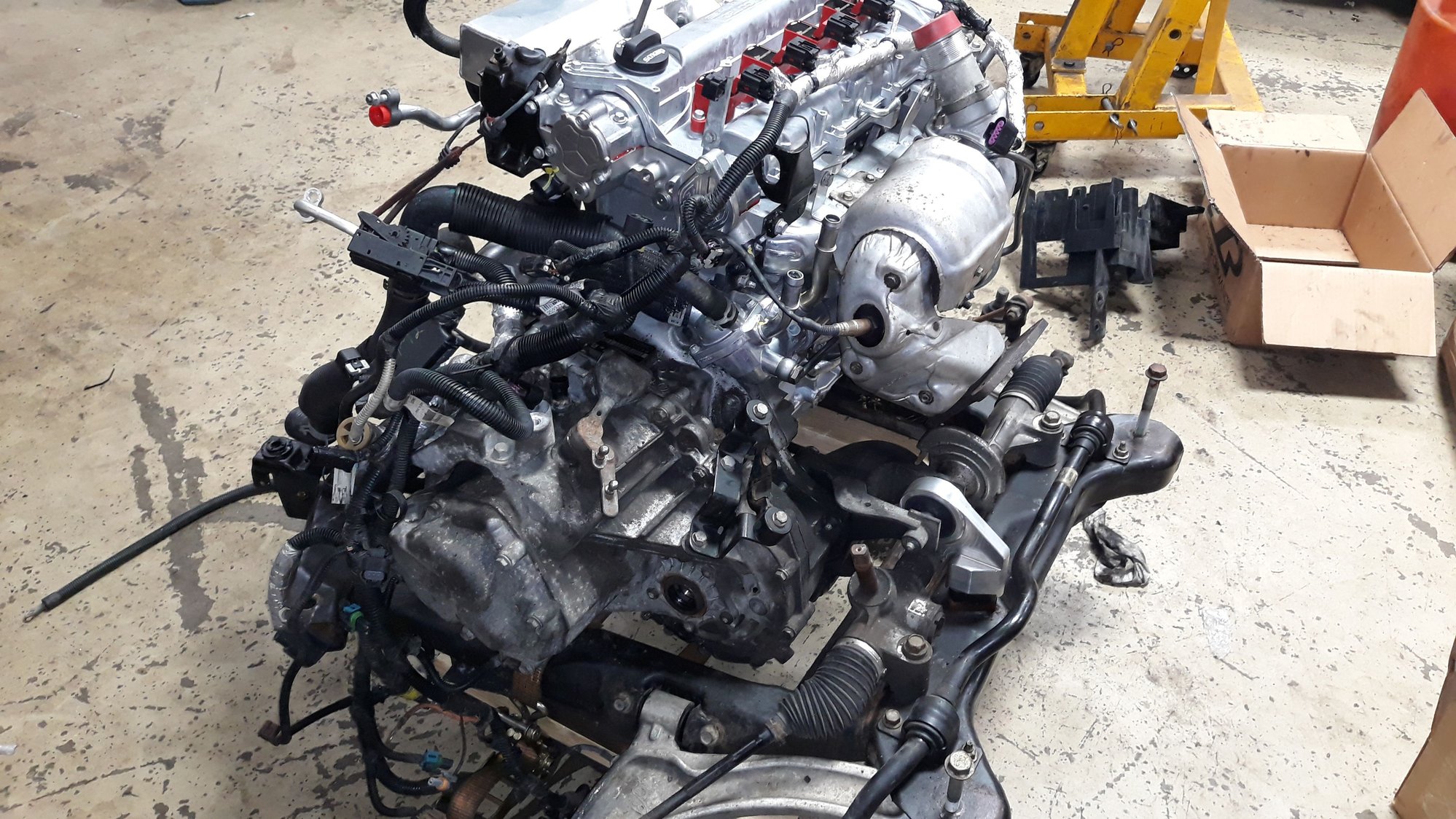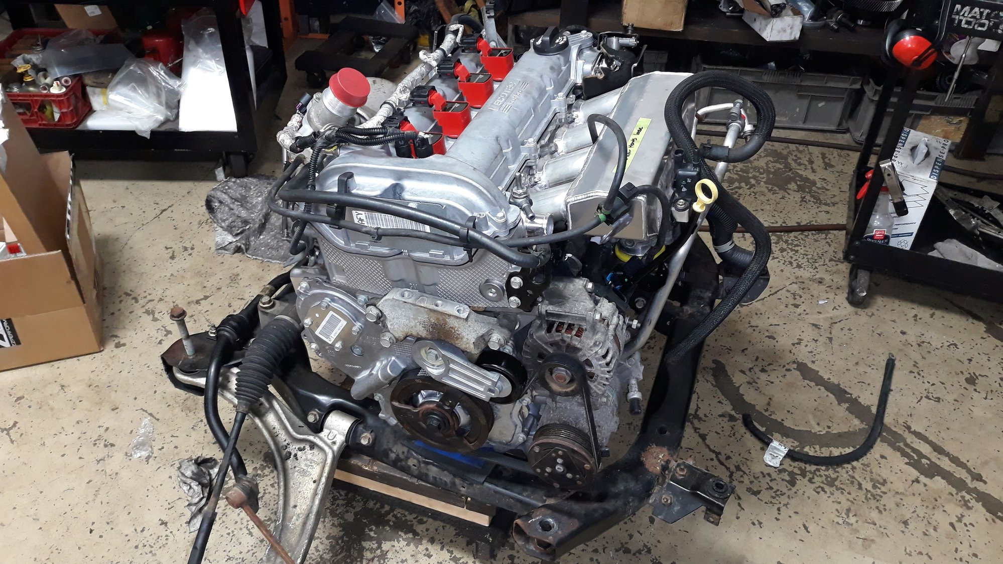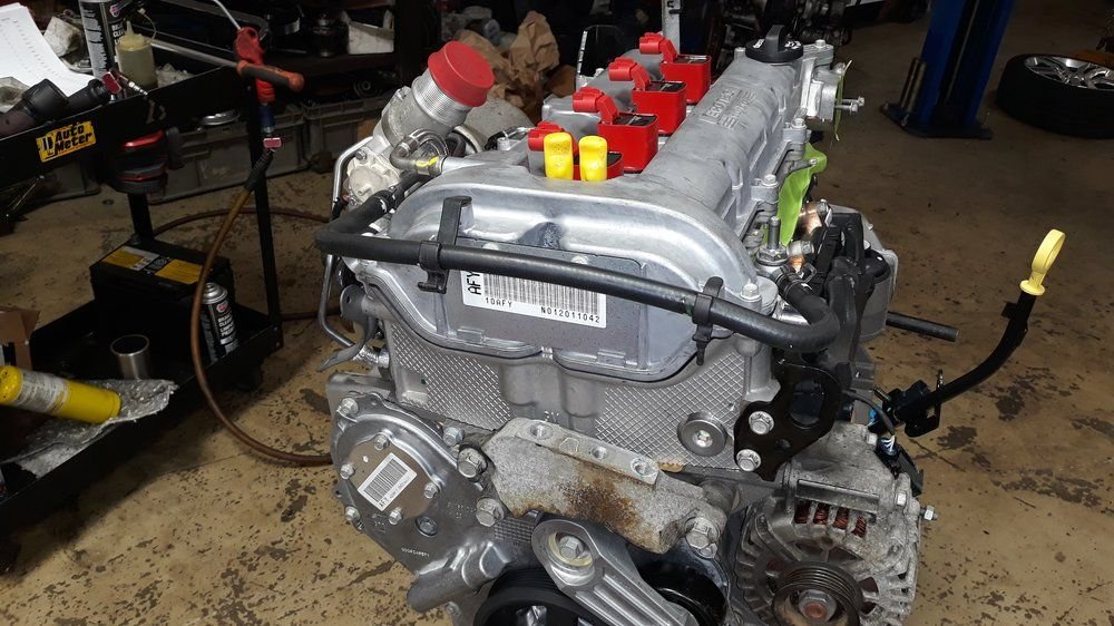 Transmission installed, engine installed to the cradle, running some wiring for wideband o2, oil pressure, and water temp gauges, then going back in the car. After that I'm replacing the entire cooling system (hoses and radiator) and installing the Hahn intercooler and charge pipes kit, a little break in for a couple hundred miles, then rpm tune is getting booted up.