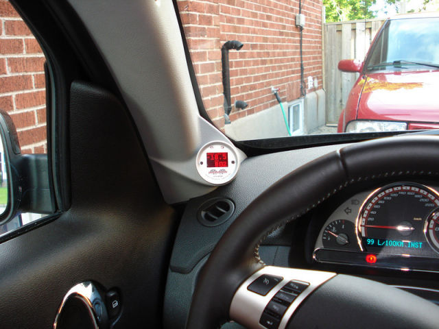 I wrapped a couple of layers of electrical tape around the new gauge housing itself, since it was a bit loose in the stock cutout location in the a-pillar... one or two layers of tape helped to snug it up in the opening a little better.