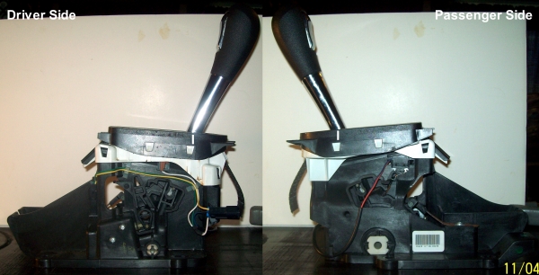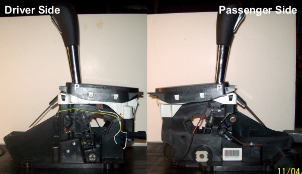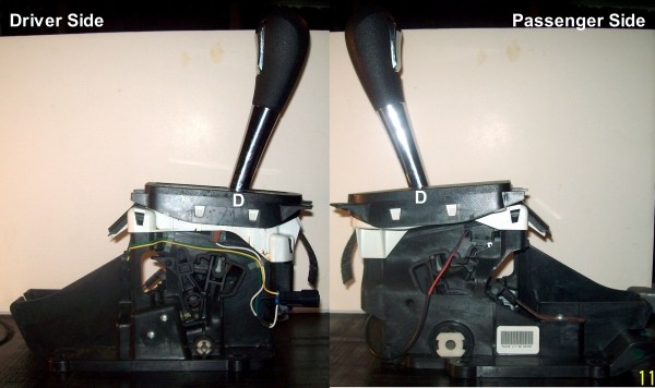 Welcome to the site! Thanks for the visually friendly photos! They also show on the drivers side the PRNDIL light where that white and black wire plugs into the shifter assembly body!
