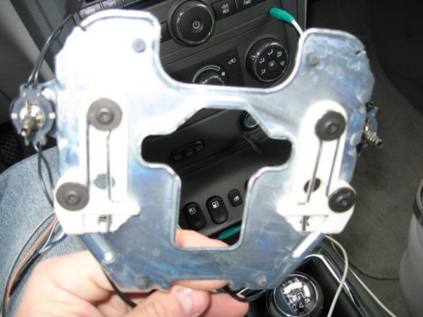 Has Chevy possibly changed anything with the 2009? I can’t seem to get the center Horn/Airbag assembly out. When I look through those two holes there is white plastic visible. What seems to me to be pushing very hard does nothing except slide off those white plastic parts. Is the direction of force suppose to line up with the steering wheel center or elsewhere?