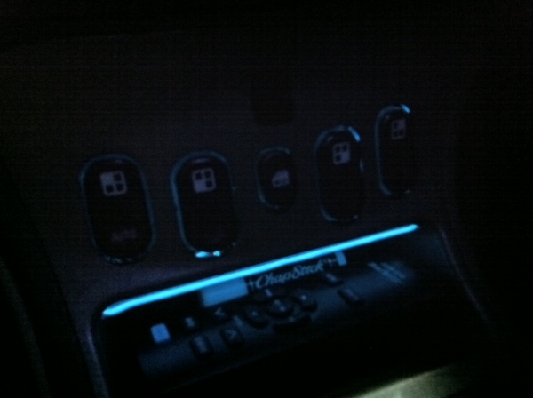 Found this thread during a search, excellent idea and writeup, just completed mine. Was able to cut and cap the EL wire when finished gluing in place. Used 1.3mm EL wire, made electrical connections to ground and the gray wire at rear of A/C controls. Fantastic improvement.