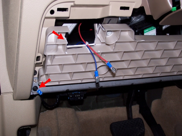Next, remove the lower dash panel, there are two screws on the bottom edge to take out, the upper part is held on with clips (so just pull outward to release).