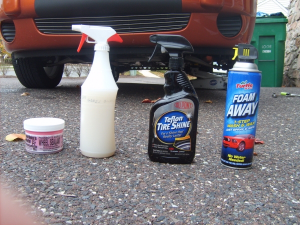 4. Tire shine. I will never use anything but Duponts Teflon tire shine again, any thing else just looks cheep and fake to me. I'm sure that alot of other companys make stuff like it that don't look soaked for a couple of hours then dull as can be. This stuff last about a week and has an extremely mellow shine.