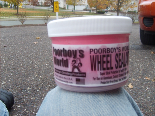 1. Poor Boys wheels sealant this is the stuff that you want, you can use normal wax but this stuff is much better. ( no metal polish people, it will ruin your finish)