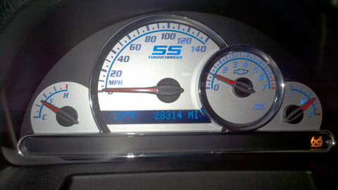 The cresent shape in the word turbocharge is definately there but I'm sure that is due to limited light off I guess a singular LED lighting that gauge.