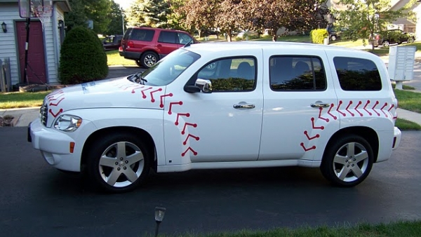 I've been wanting to do this since I bought my white HHR back in 2007. I made the vinyl decals myself, and installed them last week. Hope you like the end product: