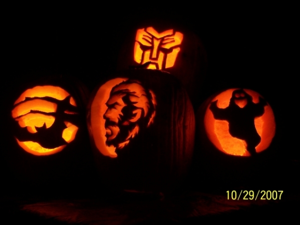 Okay we did our pumpkin last night and this is what we ended up with. My 5 yr old son and I did the Autobot, my 9 yr old did the bat, my 12 yr old did the ghost, and my Michelle ( my Wife) did the Wolfman. I think they turned out okay.