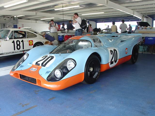 That's a nice one SS, but nothing equals the coolest Porsche ever built, the Gulf Porsche 917K of 1970. 0-125 mph in 5 seconds, top speed depending on gearing 250+, and a howl you just have to hear to believe.