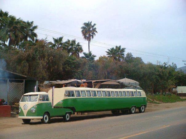 Back in the early 60s I drove a 1962 Corvair Greenbriar to work with nine riders counting me. The 4 speed growled and the engine huffed but when it got to speed it cruised down the road well. I don't know the HP of the Corcvair but the VW must have struggled too. I can see it going up a grade and passengers getting out to push it over the crest kinda' like they did on Wagon Train.