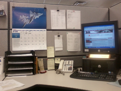 Just right of the calander is a stack of dress shirt cuffs. I have 6 from my coworkers. If a shirt has a hole in the elbow (which happens a lot for some reason) it is common place to tear the sleeve off and hang it on the wall as a trophy. I love my office!