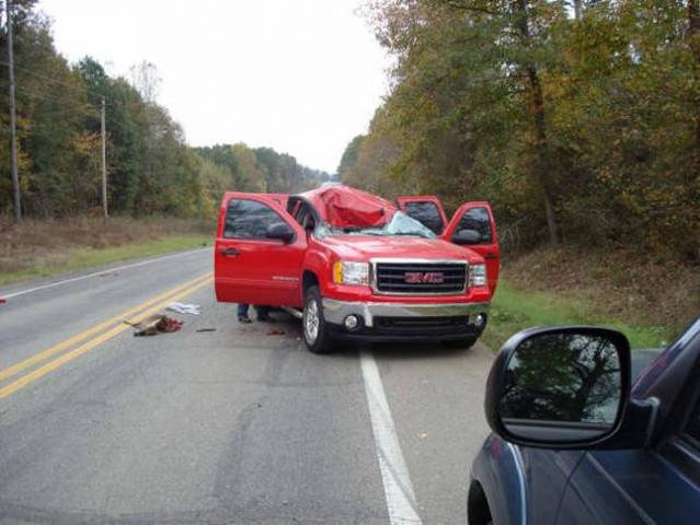 Was anyone hurt in the GMC?? wow that would have been scary!! I know it was for me, I felt really bad for the deer and thank goodness we were ok.