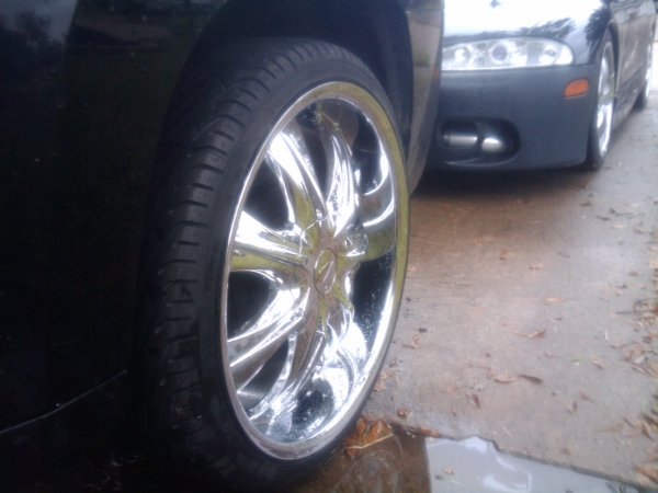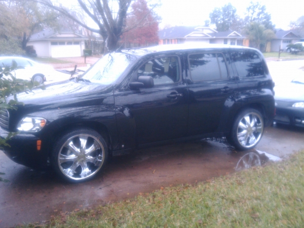 There were a few other things but these were the most important. Anyways I recieved the new 2009 hhr about 2 months ago... its a ls model, which is fine with me. Its been siting in the driveway most of the time just in case GM wanted to back out of anything. Well today the dealer sent the rims/tires guy to install the rims I picked out... they were free anyways so why not. I put 20x8 rims wraped with 225/35 tires. I will be heading to corpus this weekend to pick up a couple of sets of cobalt springs to lower it.... if ur intrested in buying the 2nd set just pm me about it. Sorry about the picture quality but they are from my phone.