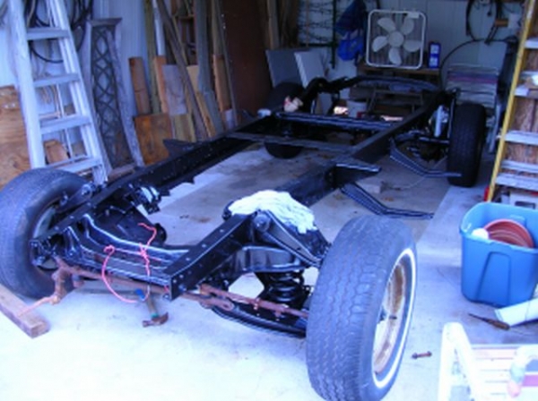 So far we have striped it off the frame and repainted the frame after we wire wheeled it and grinded on it a bit. We are at the point of a rolling chasis. Next we are going to put in a new Chevy 350 motor with a 350 trans.