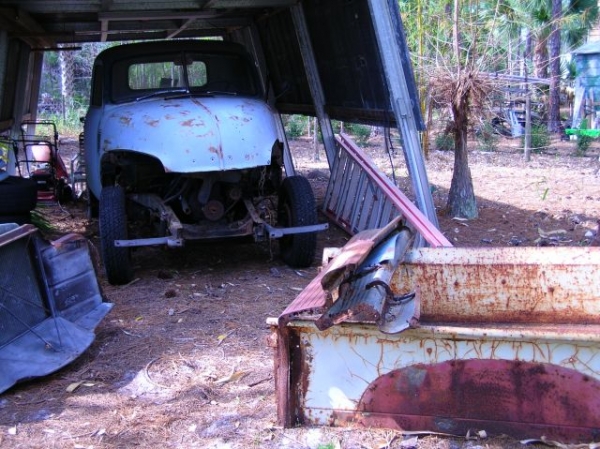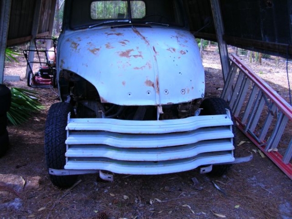 Yes We were thinking about painting it that color, Yes I am doind it we are using that cabe we have it primed. Today we took a 350 motor out of a donor Camaro, with the 350 trans. We also took the steering from the camaro. Got the motor on the motor stand now, prepparing to be stripped down to get rebuilt. Its a Friend of mine down the street from me, its his 52. Hes only 14 so I thought I would give him a hand , along with his dad we have been doing alot of work on it. His dad baought the Camaro for 600 bucks, the motor, has a demon carb and lots of other mods to it. We are going to make it look good agian and repaint the block. I will take some pics when I get to it. I just dont have anything to do on the weekend so I do this, I love old cars, trucks! We repainted the frame a couple weeks back, now working on the motor to get it mated up with the frame....