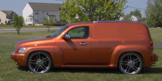 I seached for a thread like this and didnt see one, nay way here is my lame atempt. I dont have Photoshop, just some phot software that came with a camera. It is my HHR with my C6 Z06 Rims (from my Camaro) and a lame attempt to sedan delivery it..