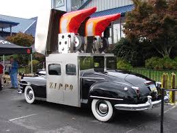 Ah, the Zippo-Mobile. I've always wondered how that odd combination of '46 Chrysler and giant lighters drives, and if it runs on "lighter fluid" or Regular un-leaded.