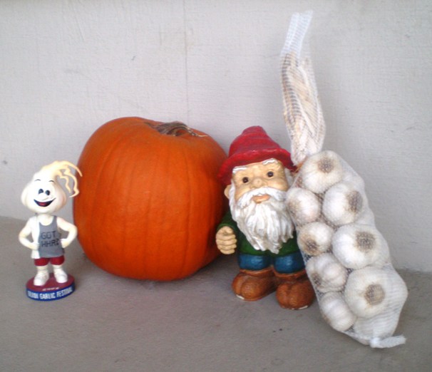Stubby spent Halloween in Gilroy this year. He didn't end up with any candy but did find a new friend and found himself some garlic