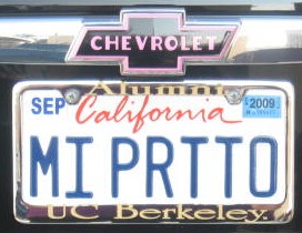 Stopped at a red light one day, the first car in the oncoming lane had this one: