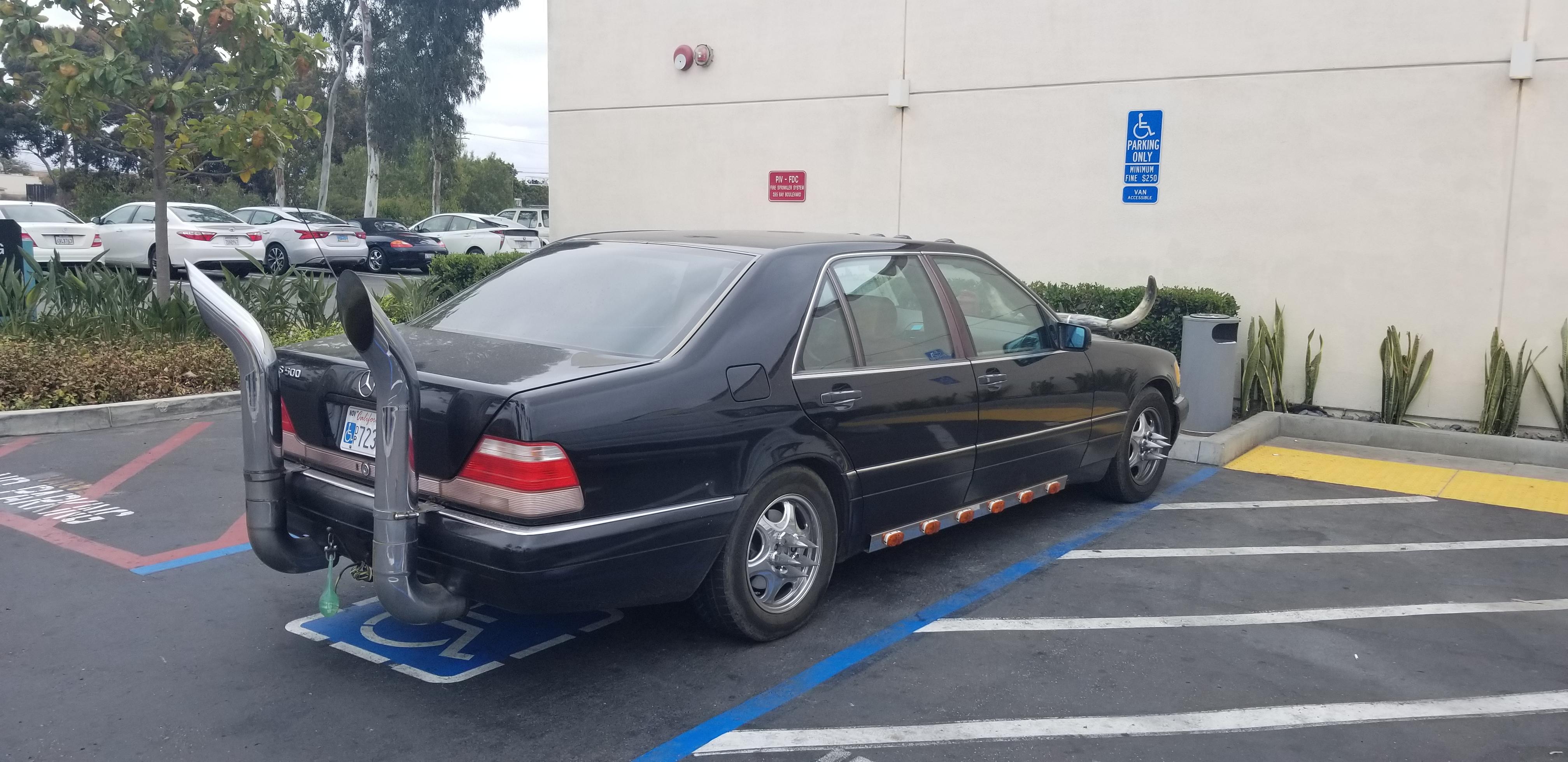 Spiked lugnut covers. And is that bull testicles and a California plate I see ?