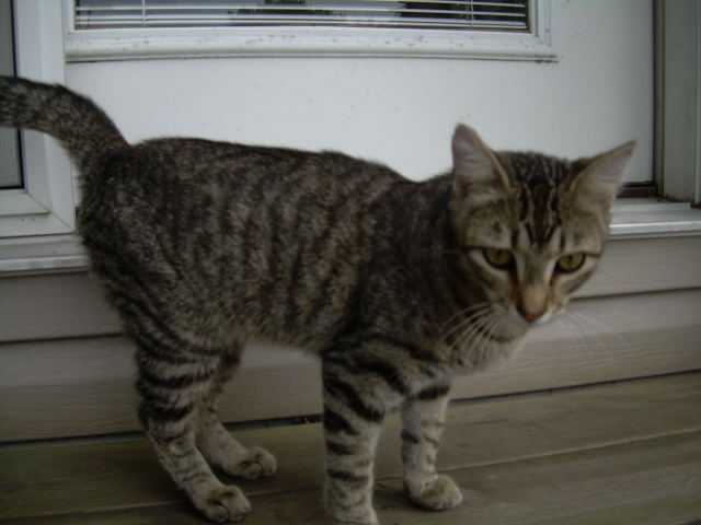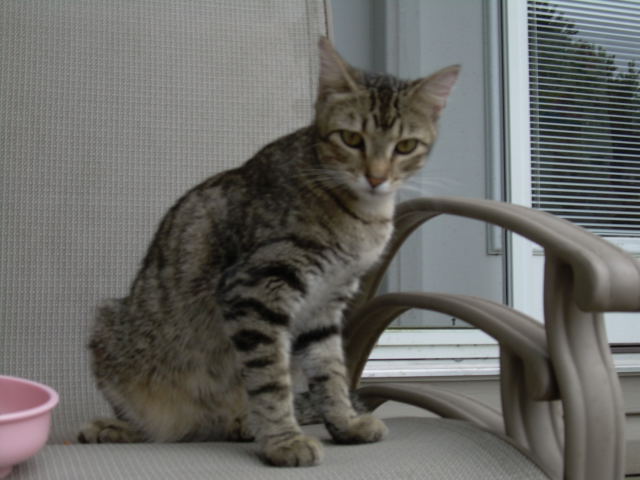 Ringo: Gray SH Male, nearly 7 years old, nicest cat I have ever had. So nice the other two females abuse the heck out of him.