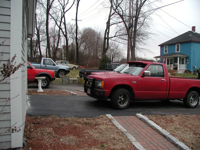 Lets see. I will post pics later.. All he cars for the family dont fit in the drieway so they are spread out a little.