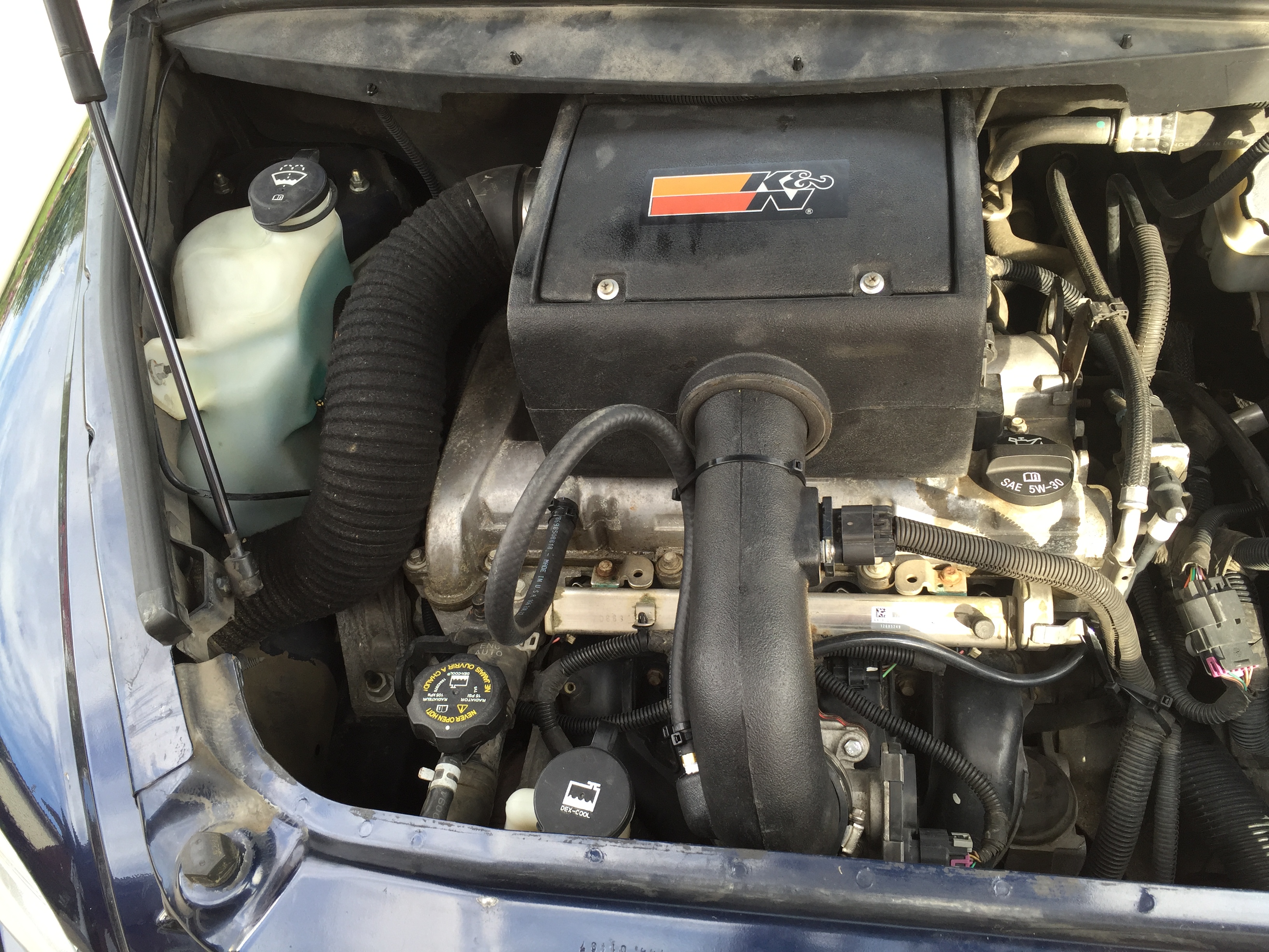 I have the K/N filter in my stock air cleaner and it is no problem to clean, once you do it a couple of times. My problem is getting a replacement 'flex" hose to the air cleaner, mine is coming unraveled. I was told by someone long ago that the hose by it self is not available.
