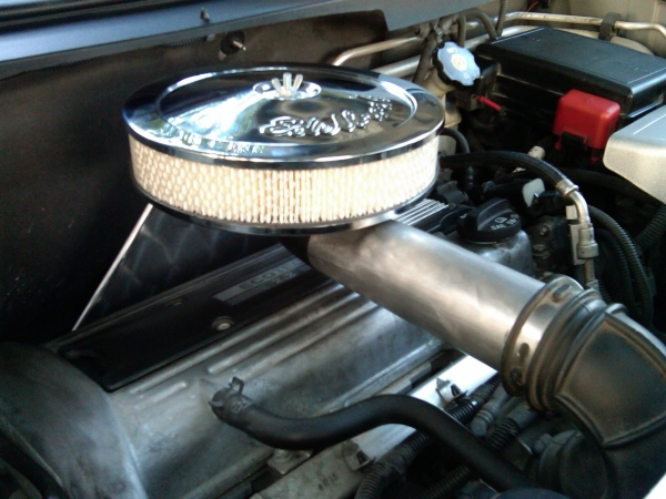 its not a kit, its custom made. just bent and cut some pipe ( 2 1/2" i think) welded the pipe to some sheet metal that was cut it out slightly smaller than the radius of the filter housing, cut the bottom of the housing out, and riveted the sheet metal to the filter housing. as for the mass air flow sensor, i ordered a weld on receptacle from gmpartsdirect, and bolted it on. the MAF receptacle is aluminum, and the pipe is steel, so i didn't want to try welding it up. i might get a better picture tomorrow. i did my first filter change last weekend with the new setup, and yeah, it only took about a minute.