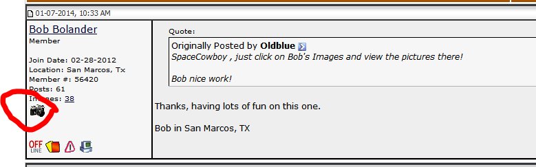 Sorry. It's aggravating when I ask a specific question.. Clearly meant for the OP. And someone that clearly didn't even follow their own advice comments advice.. I'm not a moron. I know he has a gallery of OLD pics posted. I was harmlessly asking for an update as the project seems to have died. I only joined to ask about this specific project so if it's dead and he's gone.. Meh. ban.. Whatever. Who cares.. But if he's still around I'd like to know what happened to it.