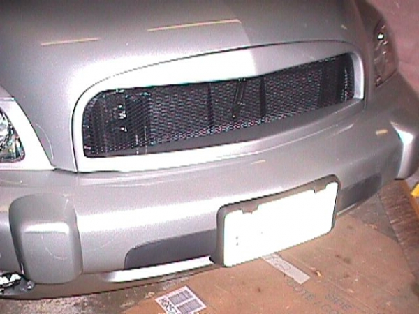 It is best to strip that coating off before painting. I, too, went with the no bar/deep look. I ended up using a 4X4 ABS mailbox post I bought at Home Depot out of their clearance section. I used the outer section of the original grille so I wouldn't have to make mounting tabs. The mesh is also from HD. I'd also recommend not glueing the mesh to the grille or lower bumper. If you ever have to repaint, you'll be doing alot of masking.