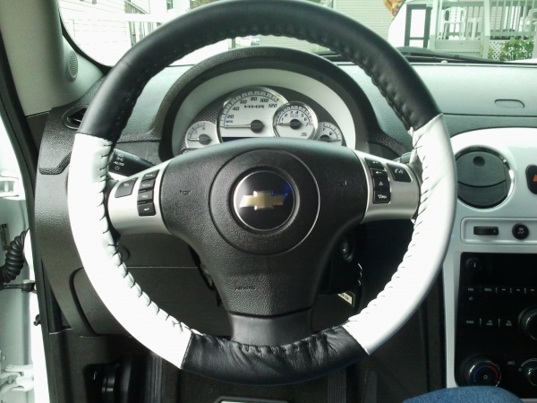 capp002, It is not a matter of patience, the two sides of the cover do not meet together like your photo shows. I have spent hours and ran out of lace (they are sending another roll). Did your two halves of the cover meet? Mine has at least a gap of 1/2" no matter how hard I pull it tight. It will not stretch enough for the halves to meet. ??? I think I read somewhere the Cobalt steering wheel is smaller? Thanks!