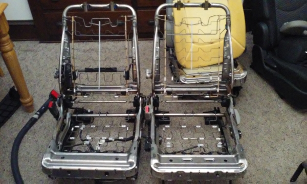 Finally finished. Had to swap the sensor module and seat base on the passenger side, the later module wouldn't talk to the airbag system, the sensor has changed from a fluid-filled bladder under the seatpad to a flat device stuck onto the surface.