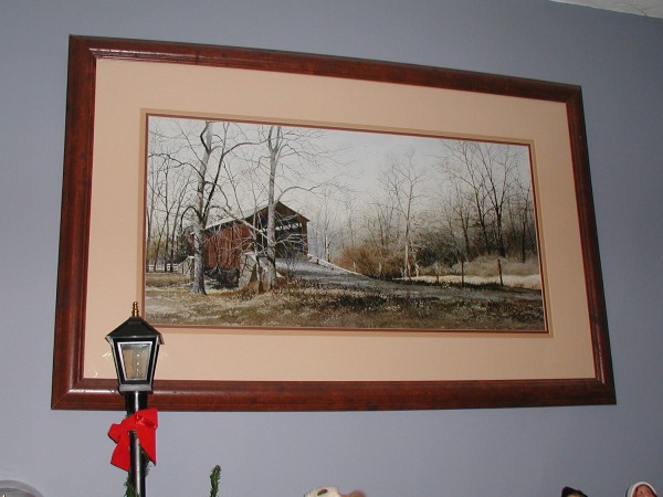 Here's a shot of the print that I bought at a yard sale about 5 years ago hanging above our fireplace mantle.