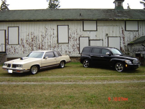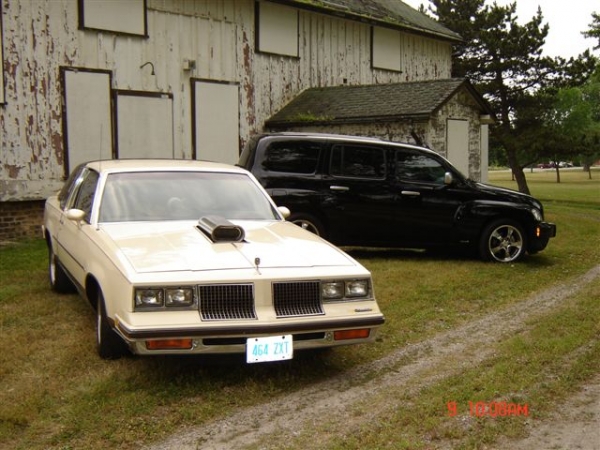 MY BROTHER THOUGHT IT MIGHT BE A COOL IDEA TO GET A FEW PICTURES OF HIS 83 OLDS AND RHINO.