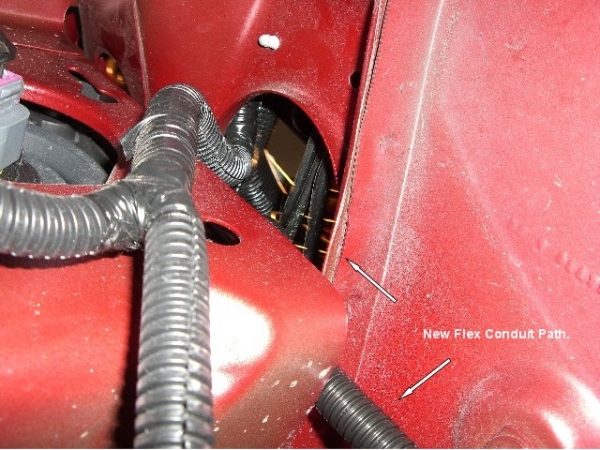This pic shows the path I routed the new conduit up and into the engine compartment.